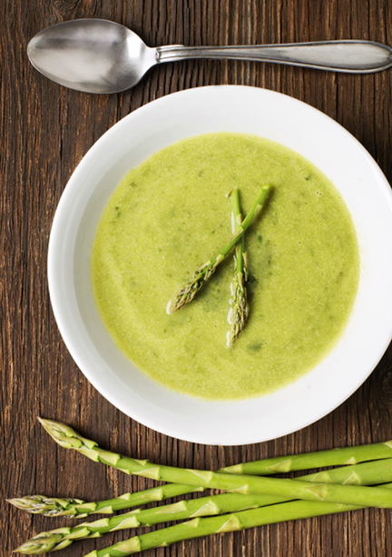 Add olive oil to a deep pan/dutch oven over medium heat. Add the onions [roughly chopped] and the potatoes [cubed] to the oil and cook until onions are translucent. Stir in the chopped Asparagus and minced Garlic; stir occasionally and continue cooking. Add some salt and pepper to taste. Add the juice from 1 lemon and cook for an additional 3-4 minutes. Stir in the vegetable broth and bring to a small boil; turn down heat and simmer until potatoes are done. Add water and salt and pepper. Stir in the fresh baby Spinach until limp, remove from stove.